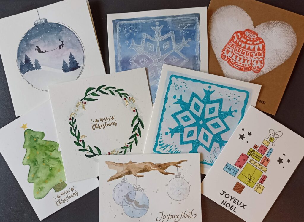 Le but étant de créer en quantité des cartes voeux, réalisées à la main, aux atmosphères diverses et variées pour séduire un maximum de curieux lors du marché de Noël des écoles de La Bastide sur l’Hers et du Peyrat. Tous les bénéfices sont chaque année destinés aux deux écoles!