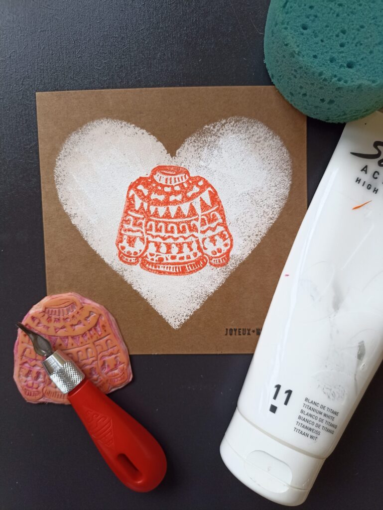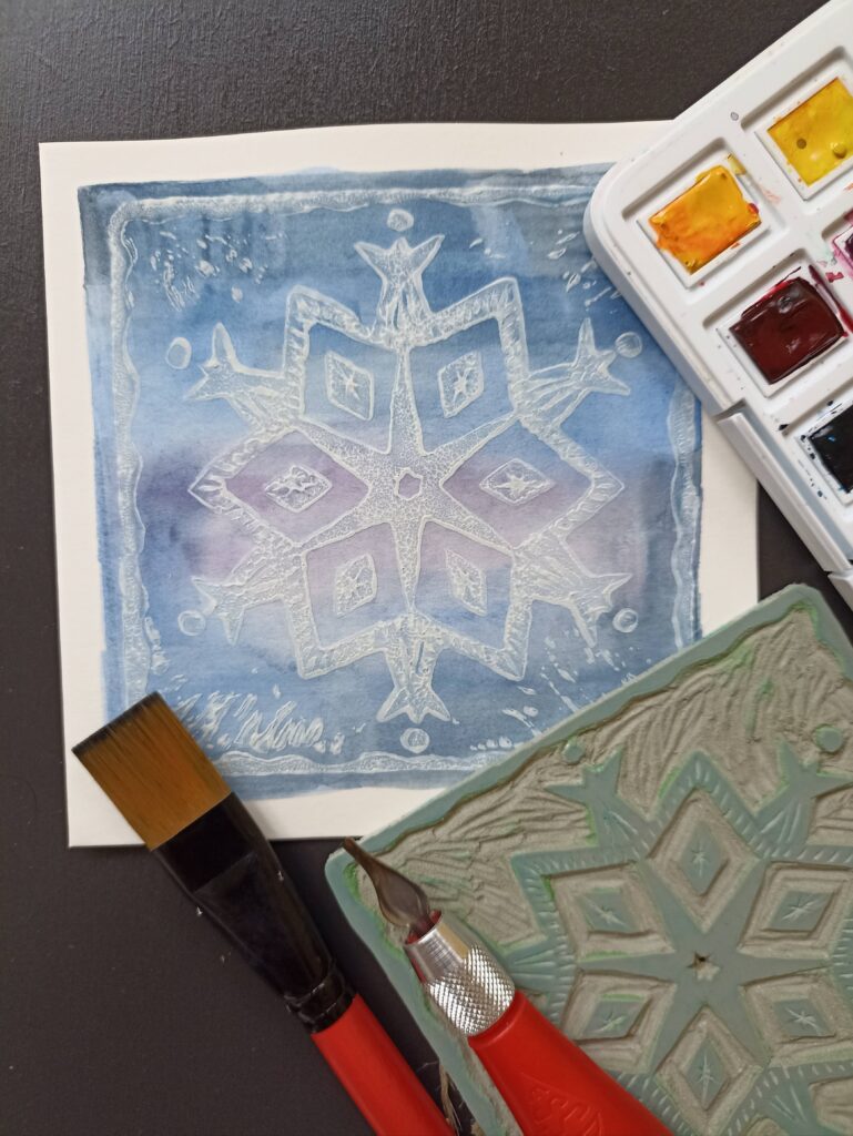 Plaque de linoléum gravée Découverte de la linogravure avec Twei Sturm, dans le cadre d’un stage d’initiation à « L’atelier » à Mirepoix (09)